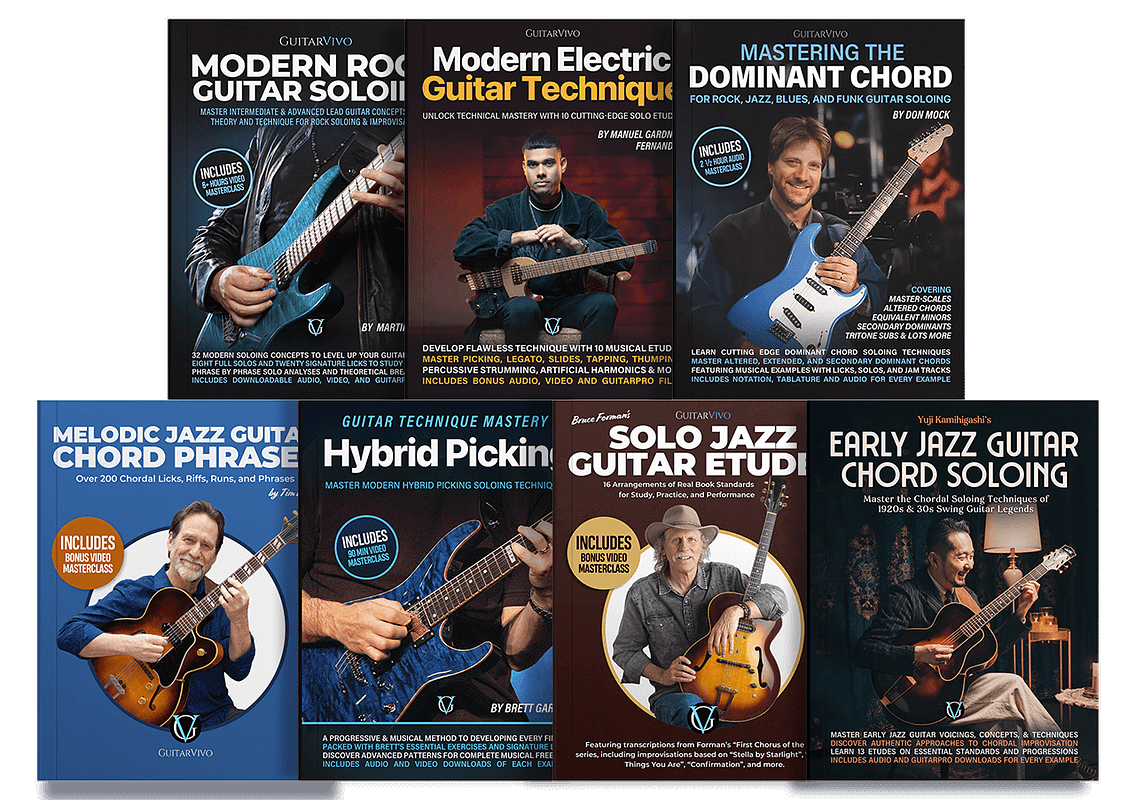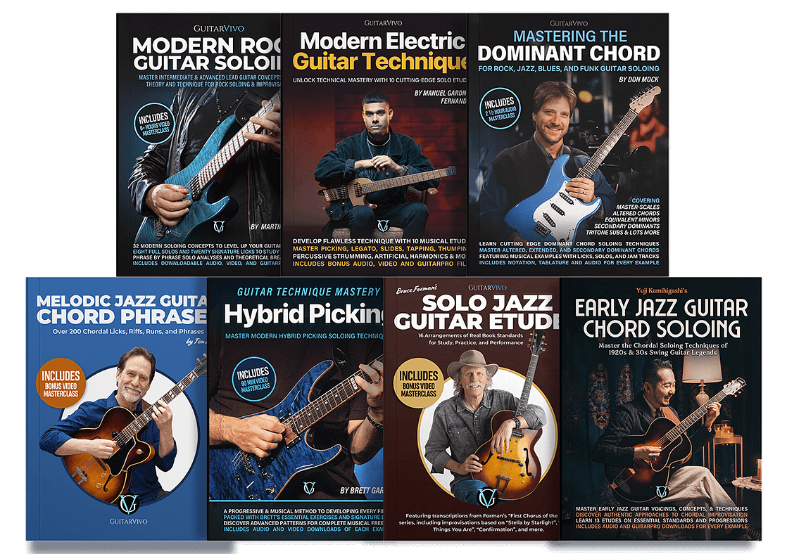 GuitarVivo Publishing was founded in 2022 with the goal of redifining print guitar education. Since then GV have released multiple international best-selling books, featured in magazines, podcasts and websites, and received thousands of five-star reviews. Combining world-class educators with quality you can trust!