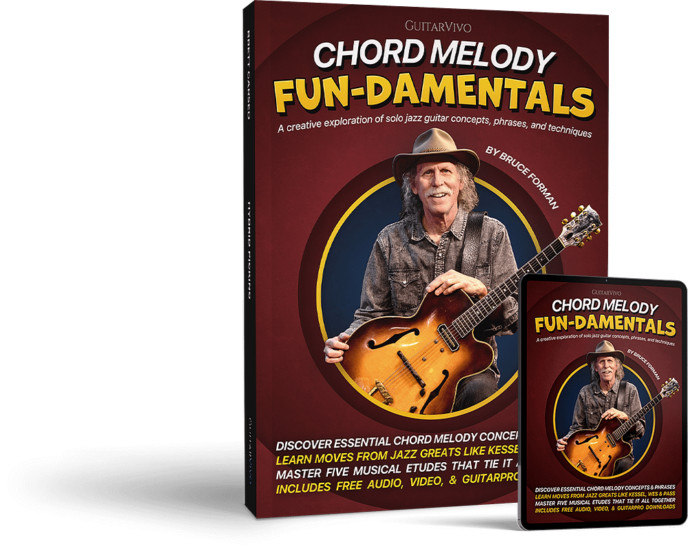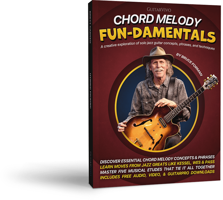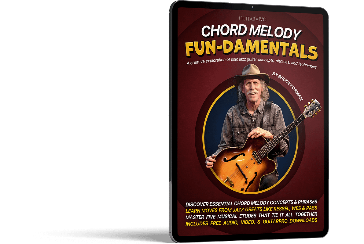 In Chord Melody Fun-damentals, Bruce Forman reveals the moves, concepts, and creative approaches that unlock expressive artistry—just like Joe Pass, Wes Montgomery, and Barney Kessel. You’ll develop musical depth, harmonic freedom, fretboard fluency, and the tools to craft authentic chord melody performances.