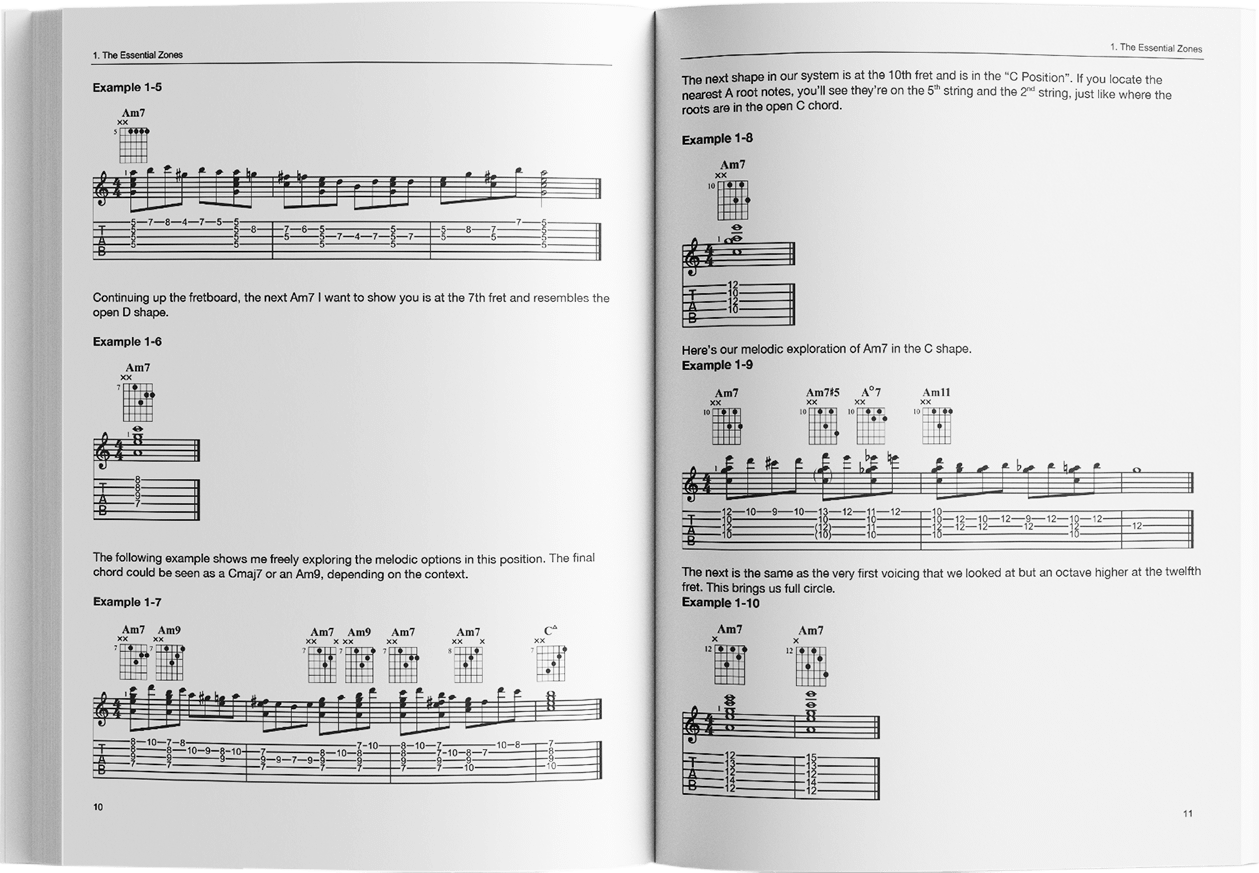 ✔ Chord melody studies across the fretboard zones