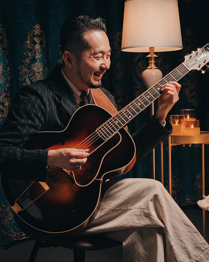 Based in Osaka, Japan, he is highly active as a guitar and ukulele teacher and is one of the very few guitarists in the country dedicated to this niche genre. He has performed with all the major figures in Japan’s early jazz scene.