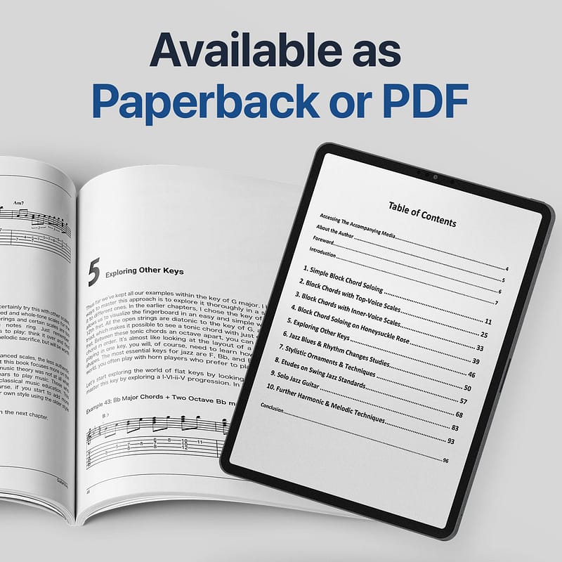 Fantastic resource for anyone interested in swing jazz and chord soloing. Covering beginner to intermediate levels, the book is well-structured and accessible, with clear explanations and practical exercises. Yuji’s expertise shines through, making complex concepts easy to grasp. Highly recommended for anyone looking to improve their guitar skills!