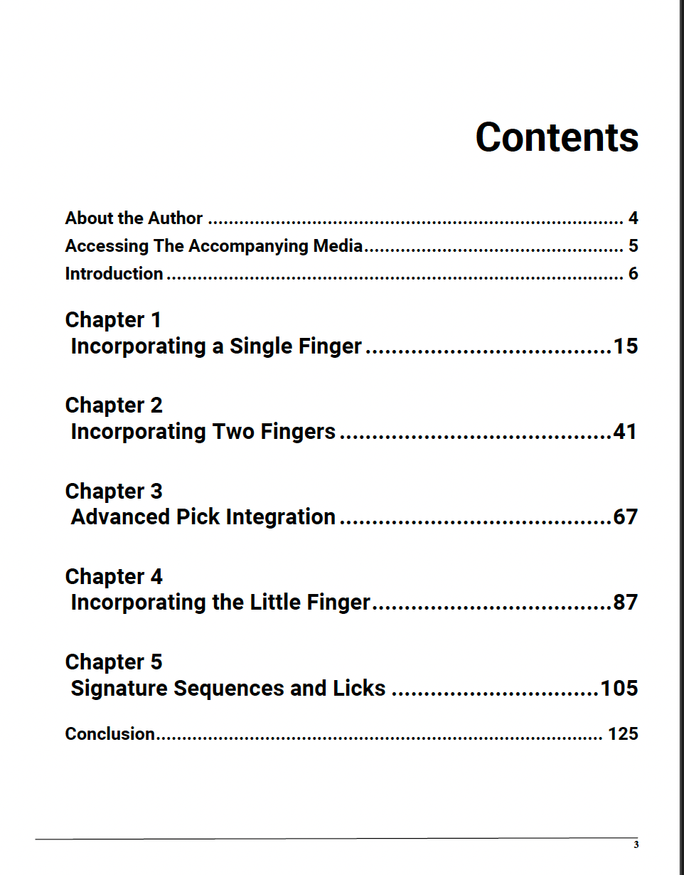 The best part of this book is that after each exercise, Brett provides you with a lick that reinforces what you just learned in a musical context. This to me is just as invaluable, putting exercises into musical ideas and contexts. A great way to teach and learn. Great book.