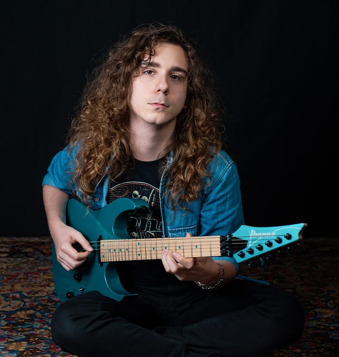 Based in Rome, Edoardo is a versatile 24-year-old guitarist known for his technical precision and melodic fusion style. He is a prolific solo artist and currently serves as the lead guitarist for the band Master Boot Record.
