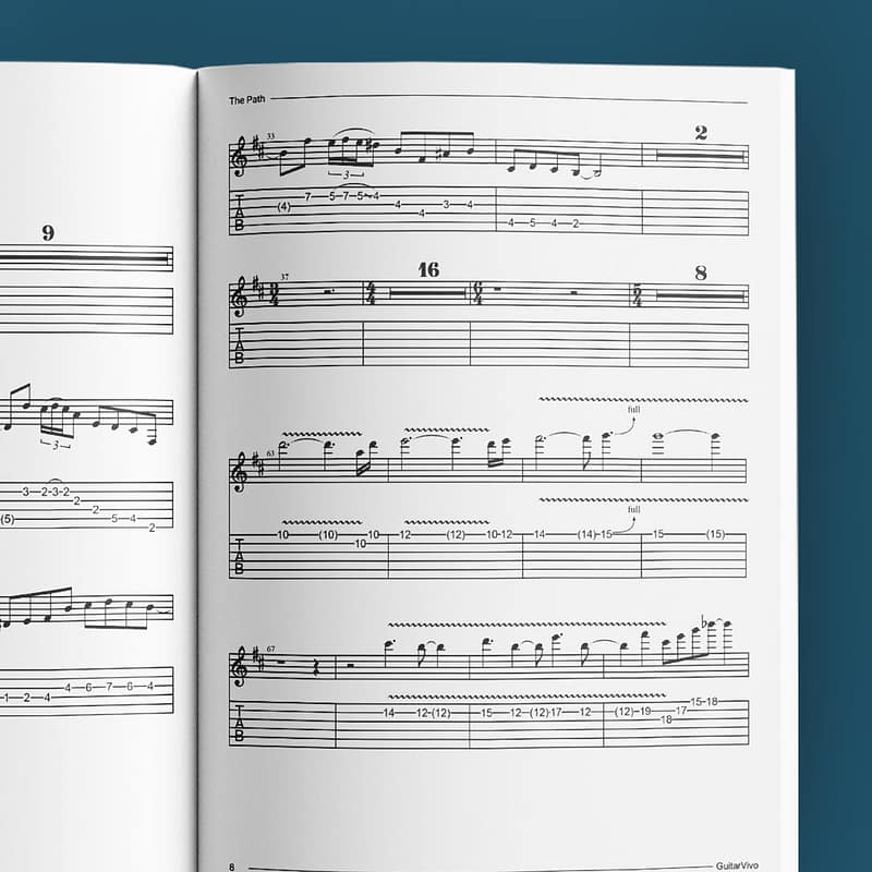 Master the technical fusion and melodic precision of Edoardo Taddei’s debut solo album. This book provides a note-for-note breakdown of all 8 tracks, covering every lead and rhythm guitar part in full detail.
